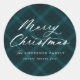 Elegantes y rústicos pegatinas de vacaciones con "Feliz Navidad" en escritura caligráfica blanca sobre un fondo de manta verde azulada pintado. Personalice a los pegatinas vacacionales con su nombre y año. ¡Los lindos stickers de Navidad son perfectos para ser usados como sellos para sobres de vacaciones, para favores de fiestas de vacaciones, y más!