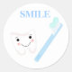 Sonrisa acentuada por un diente y un cepillo de dientes azul con pasta de dientes sobre él. Perfecto para una oficina dental.