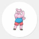 Pegatina Redonda Cerdo como culturista con gran brazo superior