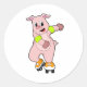 Pegatina Redonda Cerdo como patinador con patines en línea