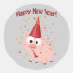Pegatina Redonda Cerdo de Año Nuevo Feliz