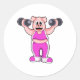 Pegatina Redonda Cerdo en Bodybuilding with Dumbbels
