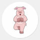 Pegatina Redonda Cerdo en yoga en una pierna