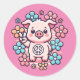 Pegatina Redonda Cerdo lindo con signo de paz y flores temáticas de