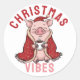 Pegatina Redonda Cerdo Navidad acogedor