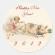 Pegatina Redonda Cerdo y ángel graciosos, feliz año nuevo 2012