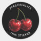 Pegatina Redonda Cerezas Rojas Brillantes Fiesta Retro Negra