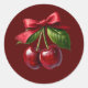 Pegatina Redonda Cerezas rojas de cerezo con una reverencia