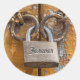 Pegatina Redonda Cerradura de Amor en Antigua Puerta Desgastada