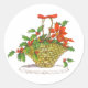Pegatina Redonda Cesta de Poinsettias con Holly