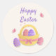 Pegatina Redonda Cesta feliz de Pascua y mariposas