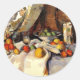 Pegatina Redonda Cezanne - Still Life Post, Bottle, Cup and Fruit