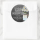 Moda popular, pizarra vintage de pizarra-Bebé ducha invitado-gracias pegatina en blanco. Un rústico tarro de albañil lleno de flores blancas, con un aspecto de pizarra. Personalizado con el nombre de la futura madre, la fecha de la ducha de bebé y "gracias". ¡Añadir productos coincidentes! Por favor visite mi tienda "La Princesa Hungaricana" en www.zazzle.com/hungaricanprincess*. Mira en mi categoría de "Oh bebé". ¡Enhorabuena!