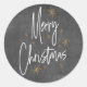 Pegatina Redonda Chalkboard y Faux Gold Purpurina Feliz Navidad