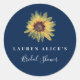 Pegatina Redonda Ducha de Novia Personalizada de Girasoles Rústicos