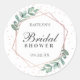 Pegatina Redonda Champán de boda con Eucalipto y Hoja de Oro Rosa