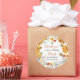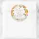 Un toque final dulce y divertido para los recuerdos de la fiesta de boda, esta pegatina redonda de agradecimiento presenta abejas zumbando, patrones de panal de abeja e ilustraciones de flores silvestres. Perfecta para celebraciones temáticas de “Ella Encontró a Su Abeja”. Personalice con el nombre de la novia y la fecha para que coincida con su evento.