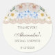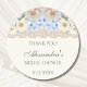 Esta etiqueta personalizada de agradecimiento para Baby Shower de Hortensia Azul Peonía presenta un arreglo romántico de hortensias suaves azules y blancas, complementadas con peonías polvorientas rosadas y blancas, todo colocado contra un fondo elegante de marfil vintage. El delicado detalle de encaje beige añade un toque de sofisticación, capturando perfectamente el encanto femenino de un baby shower floral. Inspirada en la decoración y la moda atemporales de Nancy Meyers, esta etiqueta de agradecimiento es el toque final ideal para los favores de su baby shower. Expresa tu gratitud con un toque de elegancia y belleza, haciendo que tus invitados se sientan verdaderamente apreciados.