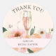 Pegatina Redonda Champán Floral Rosa Elegante Gracias