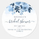 Pegatina Redonda Champán Nupcial de Acuarela Azul Marino con Letra