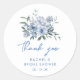 Pegatina Redonda Clásica Champán Nupcial Floral Azul Polvo Aquarela
