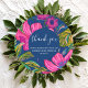 Estas pegatinas de champán nupcial floral y botánico presentan flores de acuarela en color rosa, púrpura y melocotón y hojas en tonos brillantes de verde con rosa intenso en el fondo. Una invitación de boda floral colorida perfecta