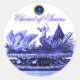 PEGATINA REDONDA CHARIOT OF SWANS AND CUPCAKES BLUE BEACH WEDDING