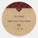 Pegatina Redonda Charm Rustic Red Buffalo Plaid Monograma Boda
