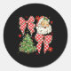 Pegatina Redonda Checkered Coquette Bow Santa Claus Christmas Holid