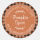 Rústico y simple pegatina de calabaza casera con el texto casero con amor, especias de calabaza y tu nombre en caligrafía de escritura de moda escrita a mano y tipografía moderna sobre un fondo de revisión naranja negro y quemado con un toque elegante de follaje. Simplemente agregue su nombre y el nombre del producto a la etiqueta. Diseñado exclusivamente para usted por Happy Dolphin Studio. Si necesita ayuda o productos coincidentes, por favor contáctenos en happydolphinstudio@outlook.com.