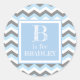 Pegatina Redonda Chevron azul bebé y Personalizado gris
