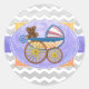Pegatina Redonda Chevron gris con cielo lluvioso y bebé morado