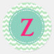 Pegatina Redonda Chevron verde agua, monograma editable