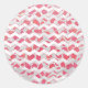 Pegatina Redonda ChevronDalmatian rosa y blanco