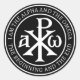 Icono de cristograma Chi-ro. Icono de vector monocrom con color de personalizable. Color de fondo personalizado. Dos campos de texto personalizado en círculo.
