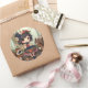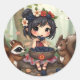 Pegatina Redonda Chibi Fairy Eating Blackberries with Forest Friend
