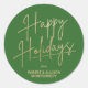 Pegatina Redonda Chic Gold Script Happy Holidays Green