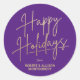 Pegatina Redonda Chic Gold Script Happy Holidays Purple