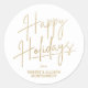 Pegatina Redonda Chic Gold Script Happy Holidays White