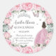 Pegatina Redonda Chic Rosa Floral Princesa Plata Quinceañera XV
