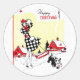 La imagen de la tarjeta de la vendimia c1930 de una chica en damas siendo arrastrada por su Scottish Terrier para entregar una tarjeta de Navidad.