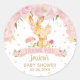 Pegatina Redonda Chica Baby Shower de conejo floral rosa