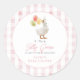 Pegatina Redonda Chica Baby Shower de Silly Goose Pink Gingham