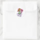 Arte mini adorable de una chica caprichosa con cabello amarillo largo y fluido y que lleva un vestido verde y medias a rayas. Ella sostiene un hermoso ramo de rosas rojas en sus manos extendidas. Originalmente hecho como arte digital. Pegatinas lindas ideales para sus planificadores, sobres y regalos.