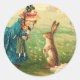 Pegatina Redonda Chica con muñeca y conejo venado de Pascua