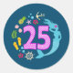 Pegatina Redonda chica de 25 años Segunda sirena de cumpleaños núme