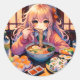 Pegatina Redonda Chica de anime lindo comiendo Ramen y suhi