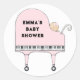 Pegatinas creativos de regalo para la ducha de bebé, etiquetas de fiesta y sellos para sobres con un gran piano de cola rosado y un chica recién nacido.