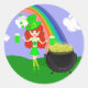 Pegatina Redonda Chica de cabeza roja en el Día de San Pat, Leprech