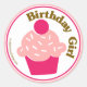 Pegatinas de quequitos rosados y lindos para que la chica de cumpleaños se ponga en su día especial en el colegio o durante su fiesta.